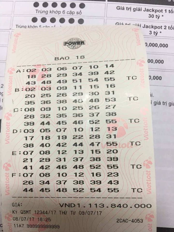 Sau đây là 1 ví dụ Vé mẫu chơi bao 18 xổ số Power 6/55 thực tế: